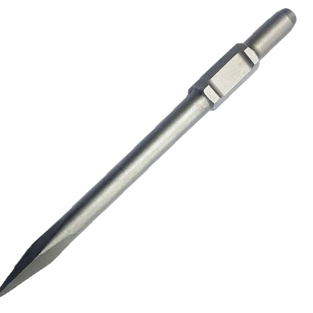 Punto con muesca para martillos demoledores de toma hexagonal. Para trabajos de demolición de pétreos, hormigón, mampostería, entre otros materiales de construcción.