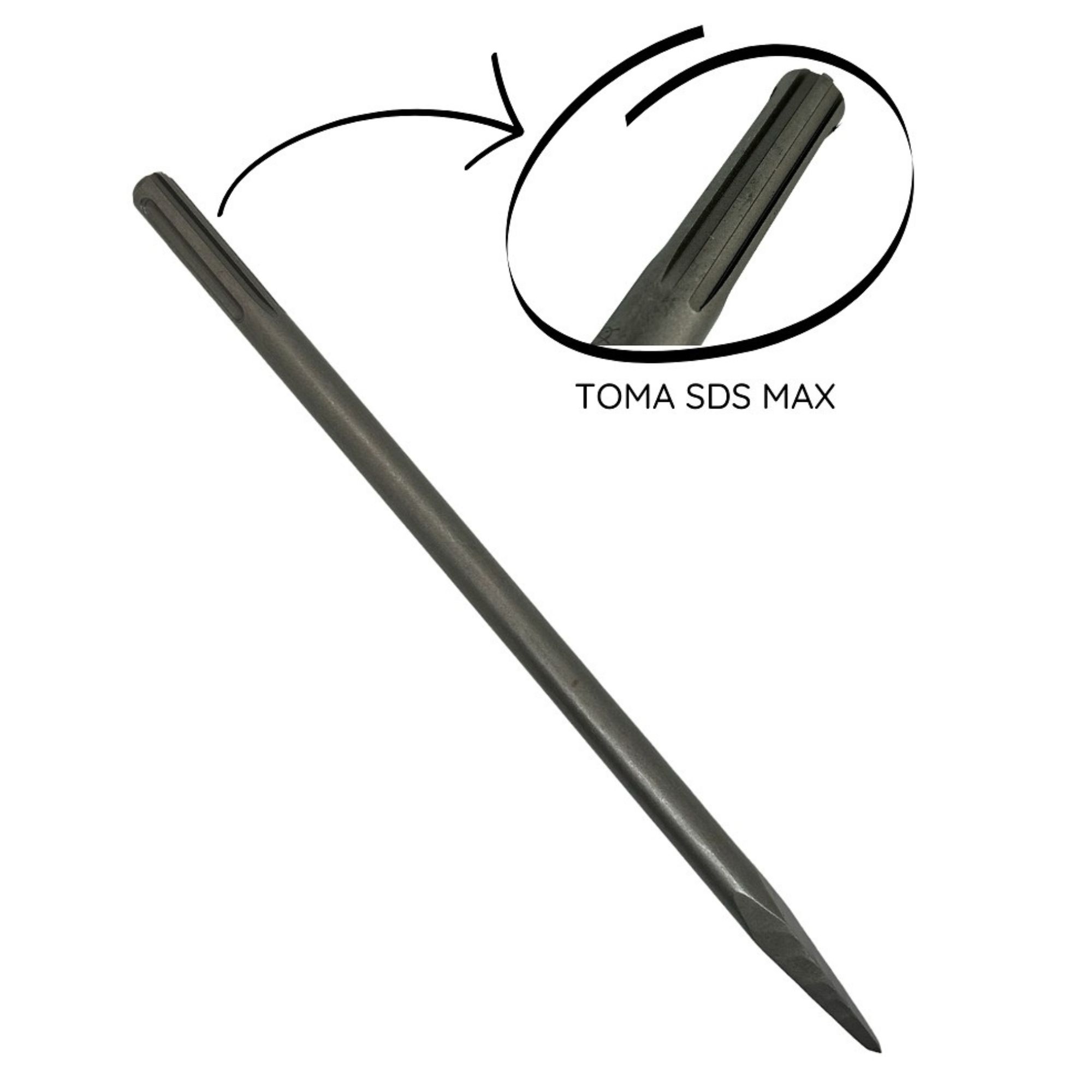 Punto para martillos demoledores con toma SDS-Max ideal para trabajos de demolición de hormigón, mampostería, entre otros.