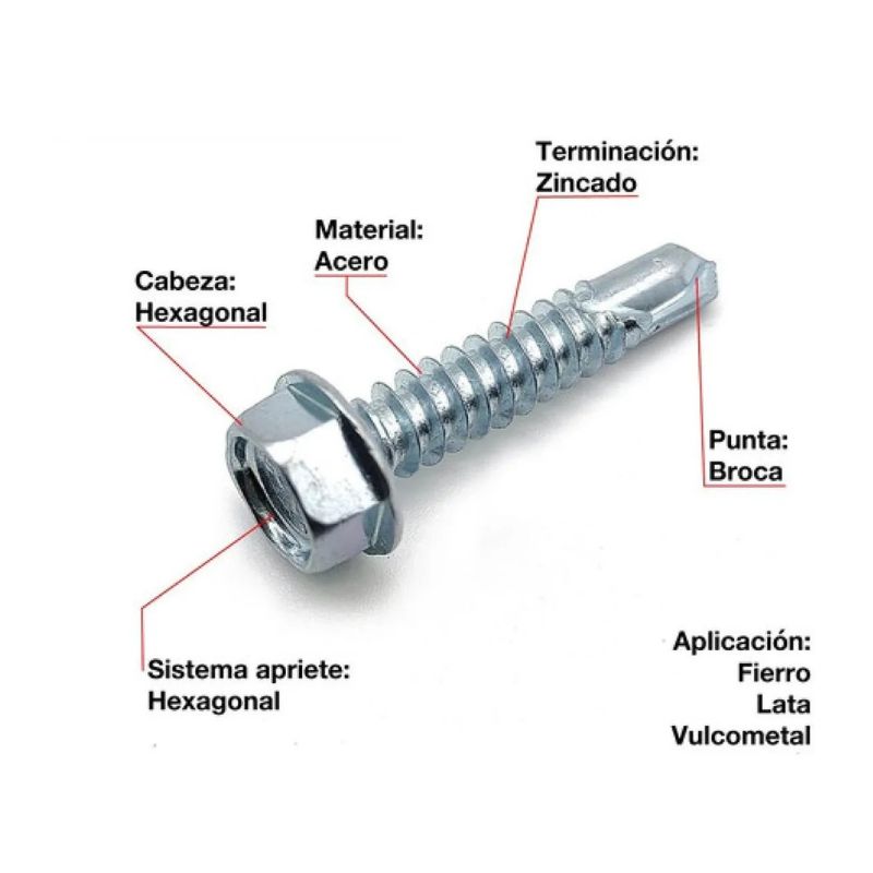 TORNILLO HEXAGONAL PUNTA BROCA SIN GOLILLA ZINCADO (100U)